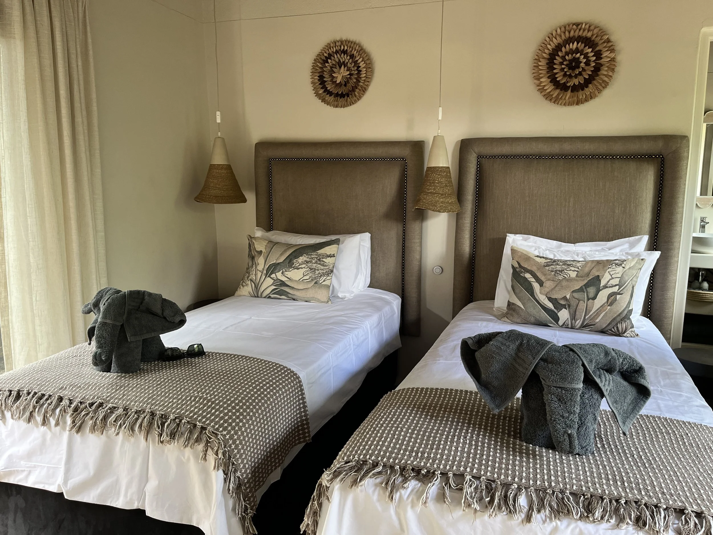 Step into your own African-inspired retreat in our luxury Garden Suites, where high thatched ceilings create a spacious, light-filled haven. Opulent bathrooms feature antique mirrors and a freestanding bath, inviting you to unwind in ultimate relaxation. Earthy tones, woven textures, and vibrant artworks come together to evoke warmth, luxury, and comfort. Nestled within a lush garden alive with birdsong, these suites offer a serene escape where nature and elegance exist in perfect harmony.